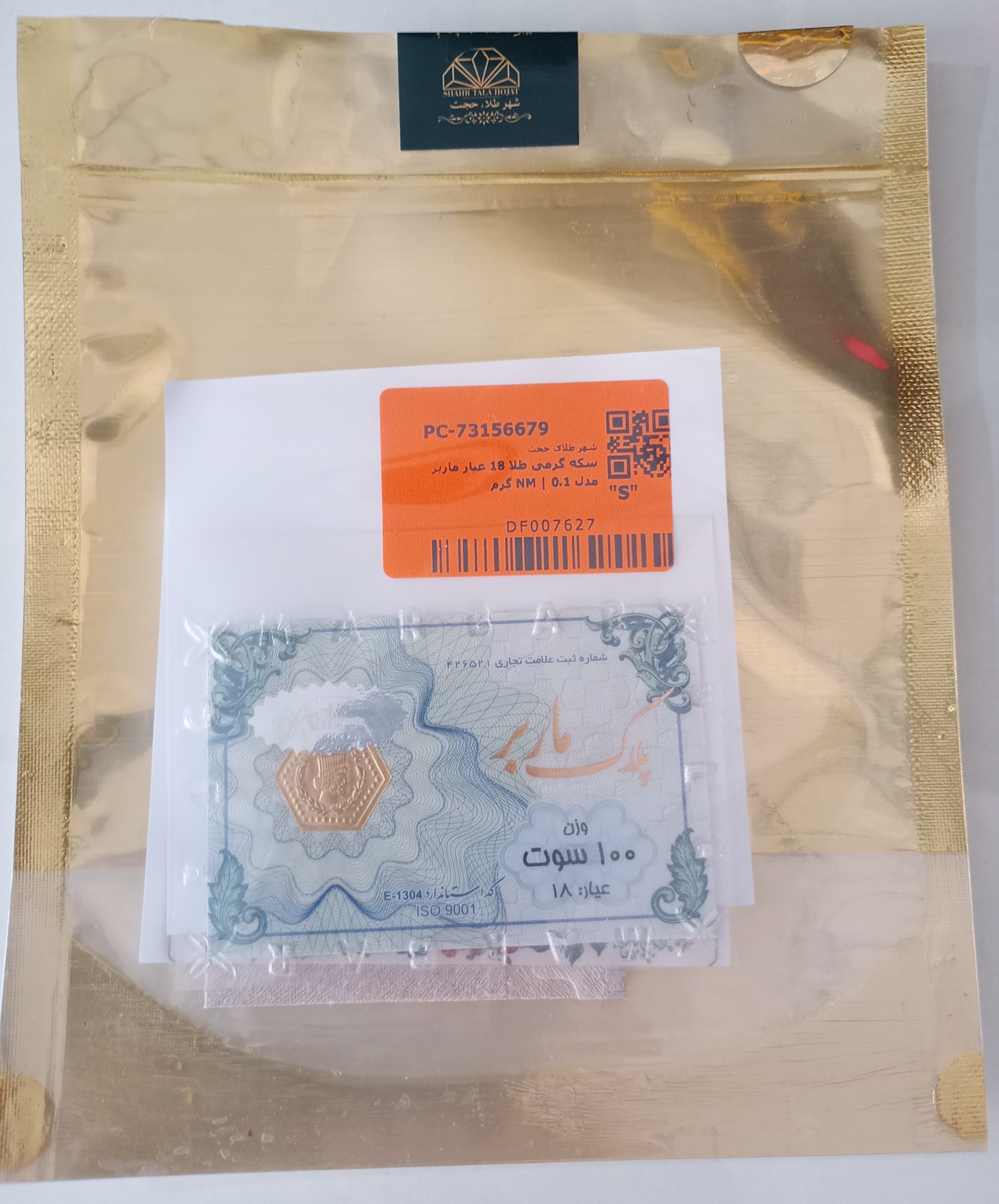 پلاک طلا ماربر۱۰۰سوت۱۸عیار